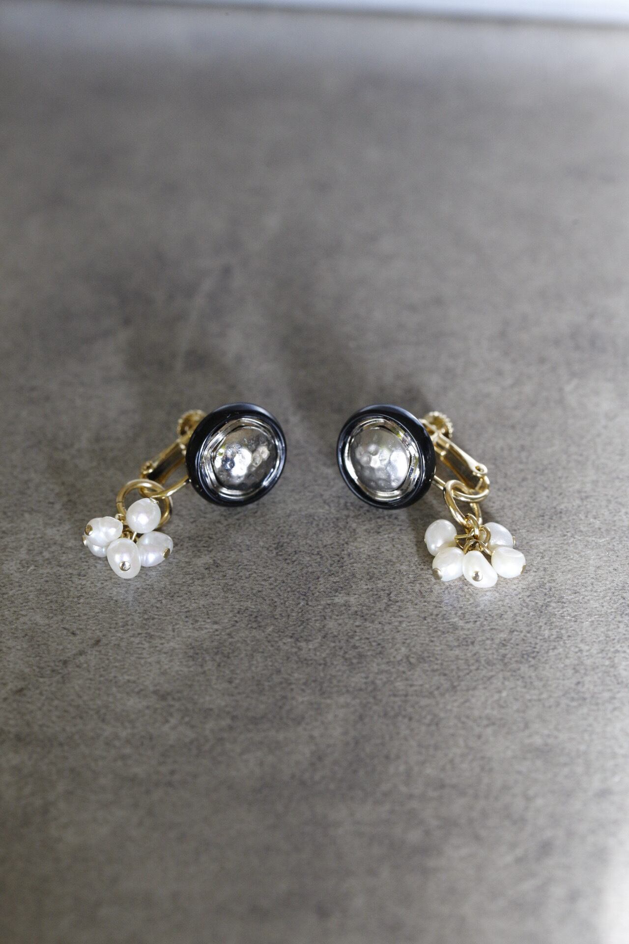 【nat*tyメタルボタン×淡水パールたわわチャームの2Wayイヤリング】