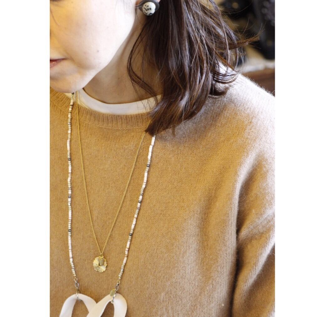 クリームがかったサンゴビーズとシルバーカラーの小粒ビーズを合わせたことにより、カジュアルにもキレイ目にもコーディネートしやすくなっています。