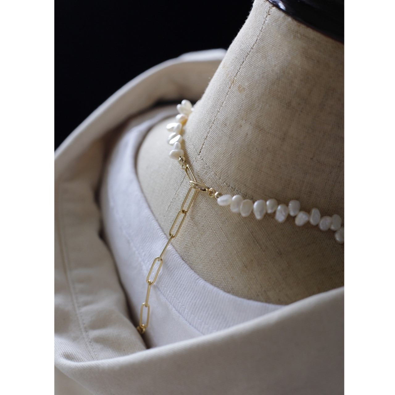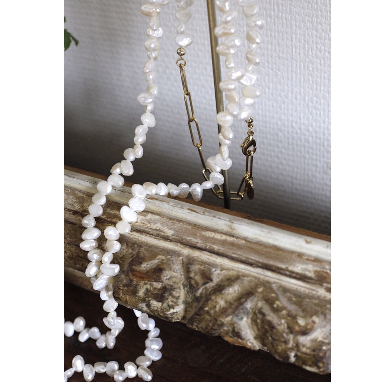 約5〜6mmの小粒のバロックパールをランダムに繋げました。