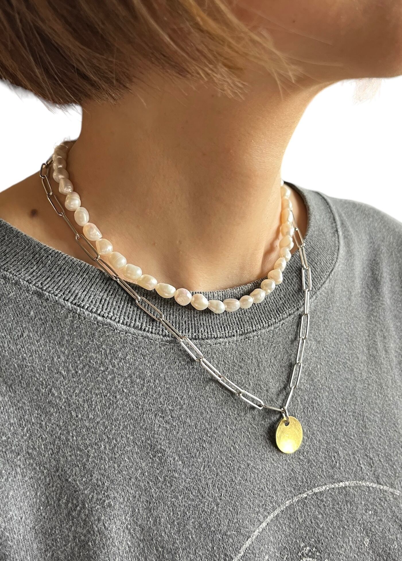 バロックパールの魅力は何と言っても個性的な形です!一粒一粒が違った形なので、つなげた時のランダムな感じがとても可愛いです。自然な輝きと整いすぎない粒が、普段使いしやすい人気の秘密です。