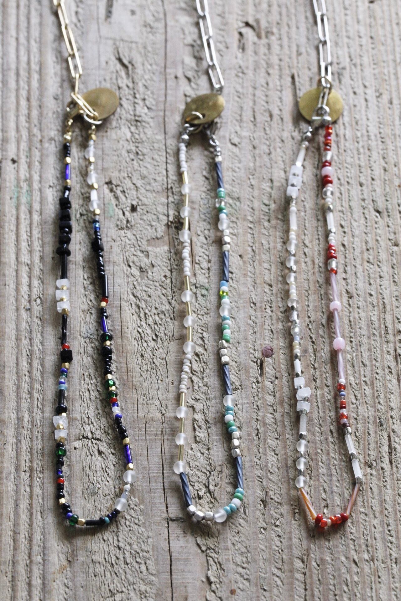 小粒のヴィンテージビーズ、メタルビーズなど、ランダムに組み合わせて作ったチョーカーネックレス