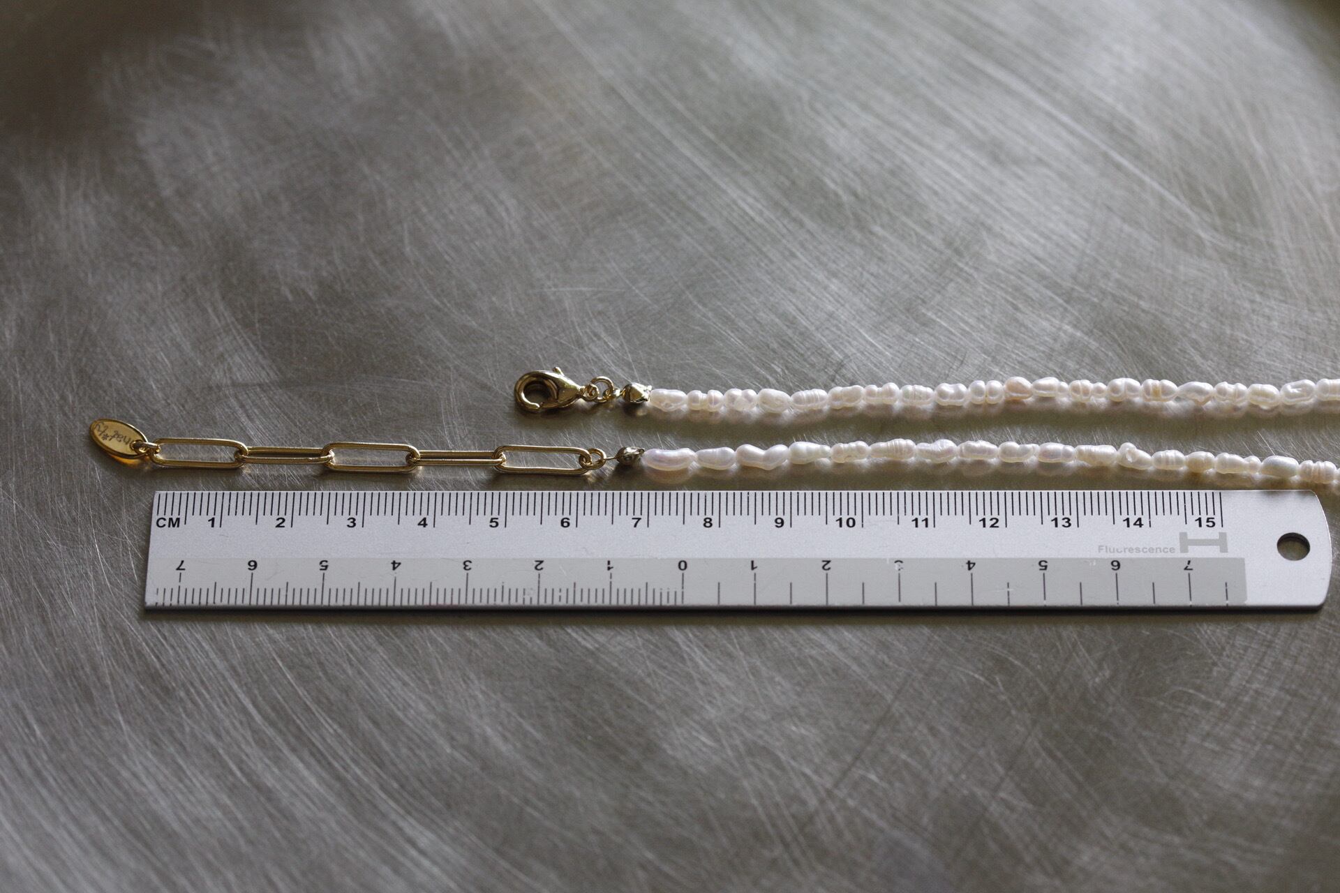 約3〜4mmの極小粒のライス型淡水パールを繋げました。