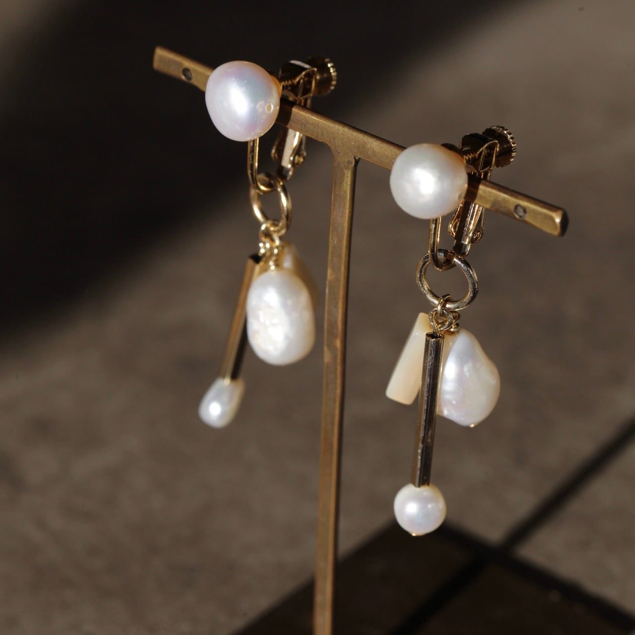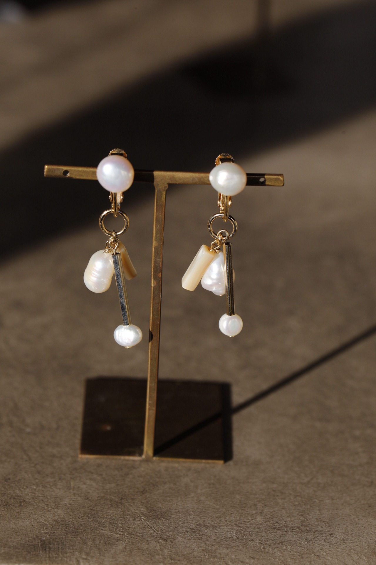 【nat*ty淡水パールとシェルの2wayイヤリング】